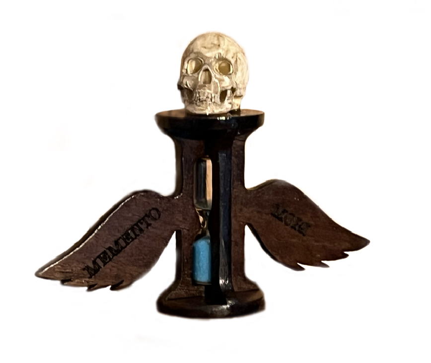 The Masonic Memento Mori Hourglass with Wings is a handcrafted solid walnut relic engraved with Memento Moriand a skull & crossbones. Its 20 second sand timer offers a brief but powerful daily ritual—pause, reflect, and remember that time is fleeting. Whether displayed on your desk or hung as an ornament, it serves as a bold reminder of mortality and the duty to live with purpose.